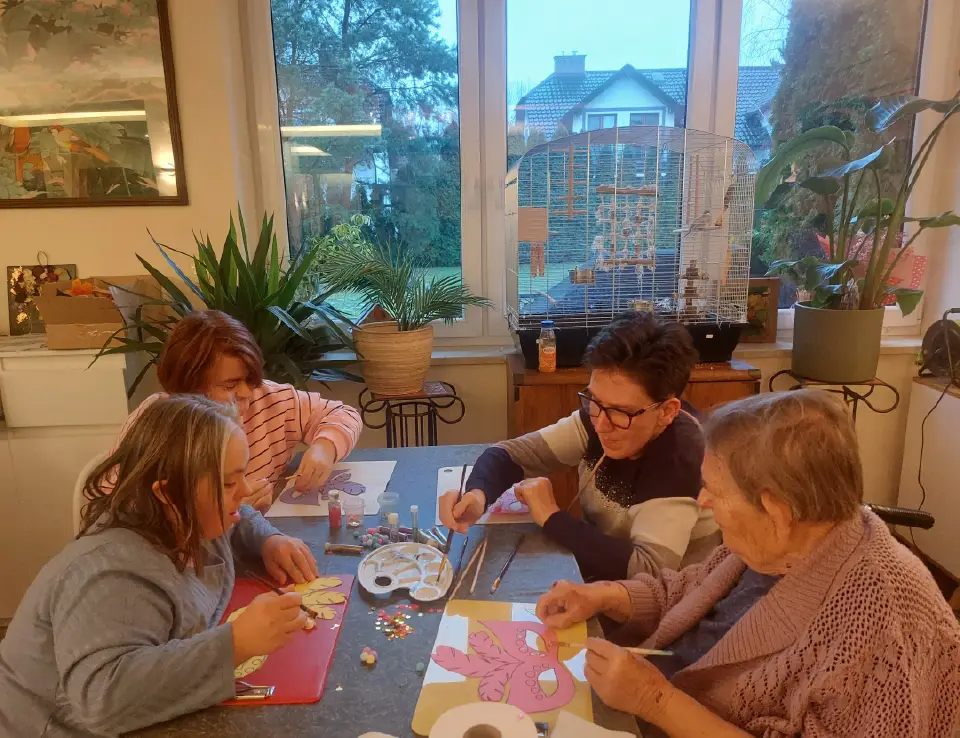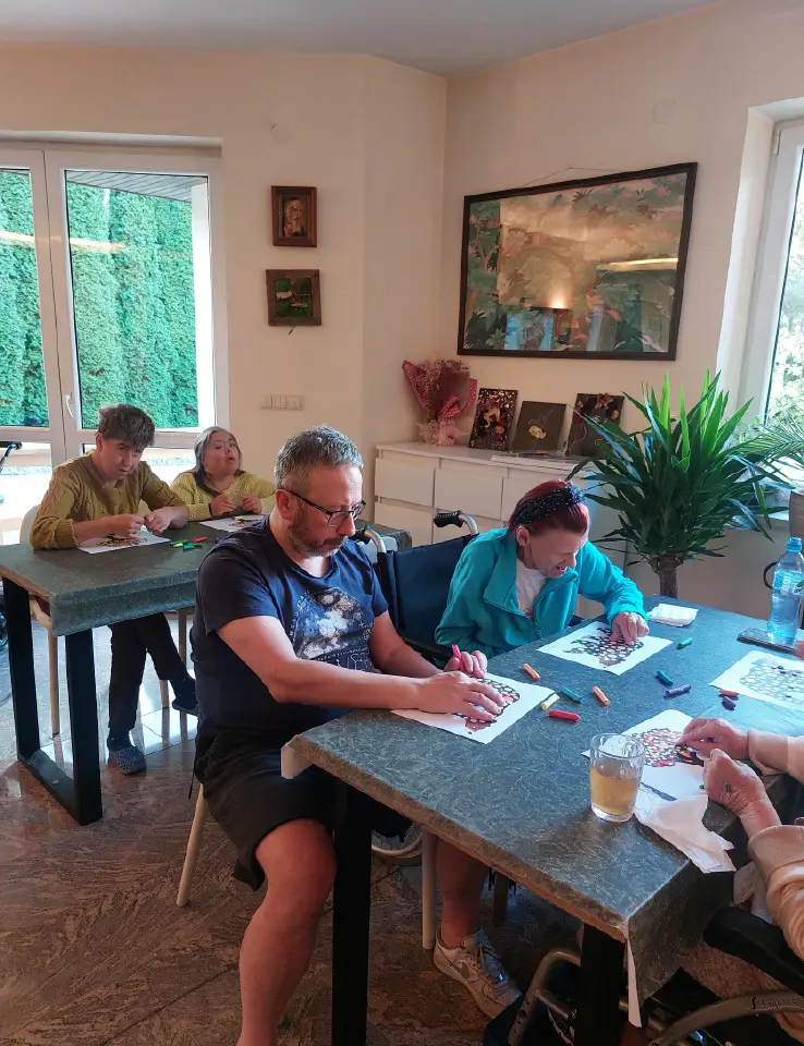 Uczestnicy DWD Nasz Zakątek nie poddali się melancholii jesiennej. Czas ten obfitował w różnorodne atrakcje – od obchodów 15 – lecia Fundacji Nasza Bajka po Bal Andrzejkowy. Jednak większą część czasu poświęcamy na zwykłe, codzienne aktywności – dbanie o czystość wspólnej przestrzeni, zakupy, przygotowywanie posiłków, spacer po lesie, zajęcia plastyczne czy też szlifowanie umiejętności porozumienia ze światem i innymi.