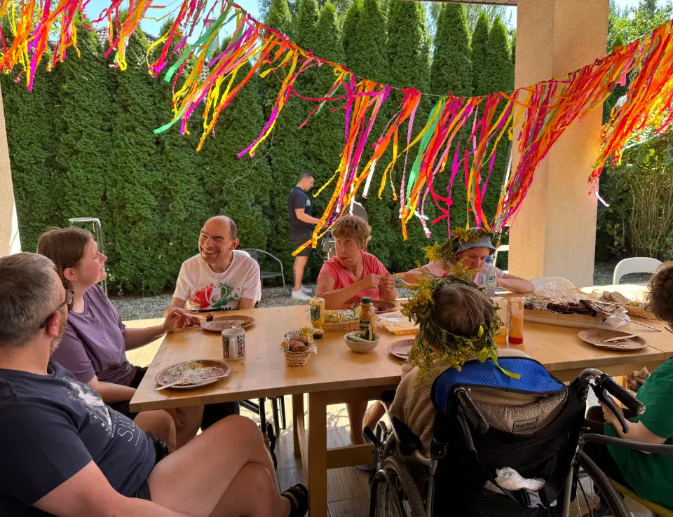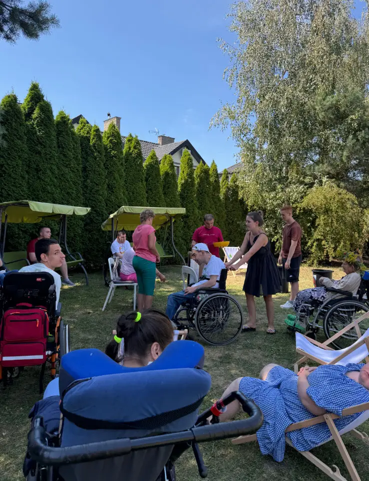 Nie zabrakło też atrakcji na miejscu. W siedzibie Fundacji zorganizowaliśmy Dzień Wodny, który upłynął pod znakiem gier, zabaw ruchowych, kolorowych baniek mydlanych i wodnych szaleństw oraz Dożynki, podczas których mogliśmy upleść wianki z kwiatów i brać udział w rozmaitych konkurencjach sportowych!