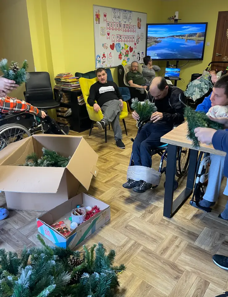Staramy się spędzać czas na powietrzu, czy to latem korzystając z ogrodu, czy to spacerując po najbliższej okolicy. Uwielbiamy wyjścia do kina czy na plenerową siłownię. Staramy się nie zamykać się w swojej skorupie dlatego też współpracujemy z wolontariuszami firmy CHUBB, przyjmujemy gości – Przedszkolaków wraz z wychowawcami z Niepublicznego Przedszkola Wesoły Teletubiś w Markach. Wzięliśmy udział w wywiadzie grupowym przeprowadzonym w ramach projektu RESPONSIVE, który ma na celu zwiększenie umiejętności odpowiadania, służb społecznych w Europie, na potrzeby obywateli i umożliwienie im oddziaływania na zmianę funkcjonowania tych służb. Rozwijamy się artystycznie podczas warsztatów lepienia gliny, czy też poprzez udział w występach artystów żonglerki i magii. Podjęliśmy inicjatywę wsparcia zwierząt przebywających w schronisku prowadzonym przez Fundację Bezdomniaki. Ponadto wykonujemy zwykłe czynności takie jak zakupy czy prace ogrodnicze. Wspólnie celebrujemy ważne dla nas dni czy święta.