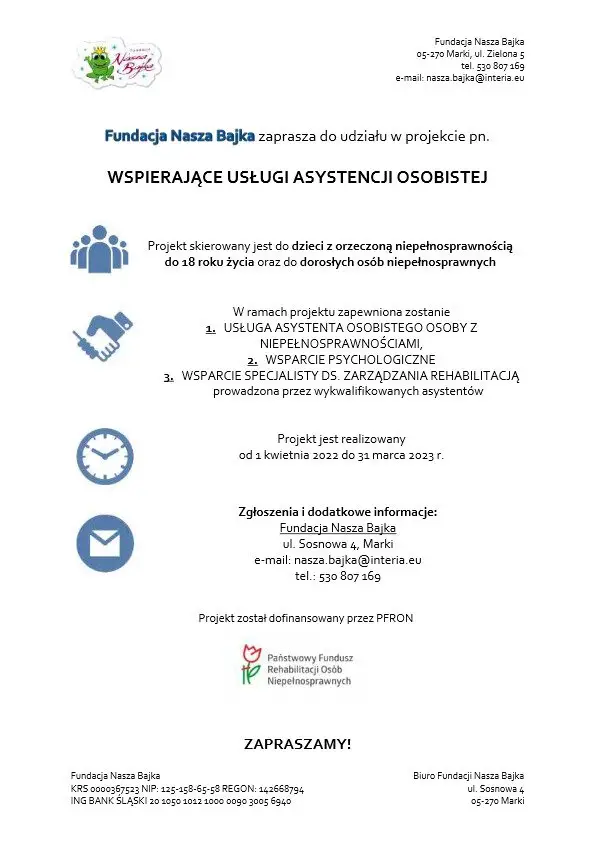W ramach tego projektu 20 osób z niepełnosprawnością, w tym 10 osób dorosłych z niepełnosprawnością, może skorzystać ze wsparcia: