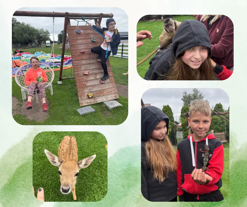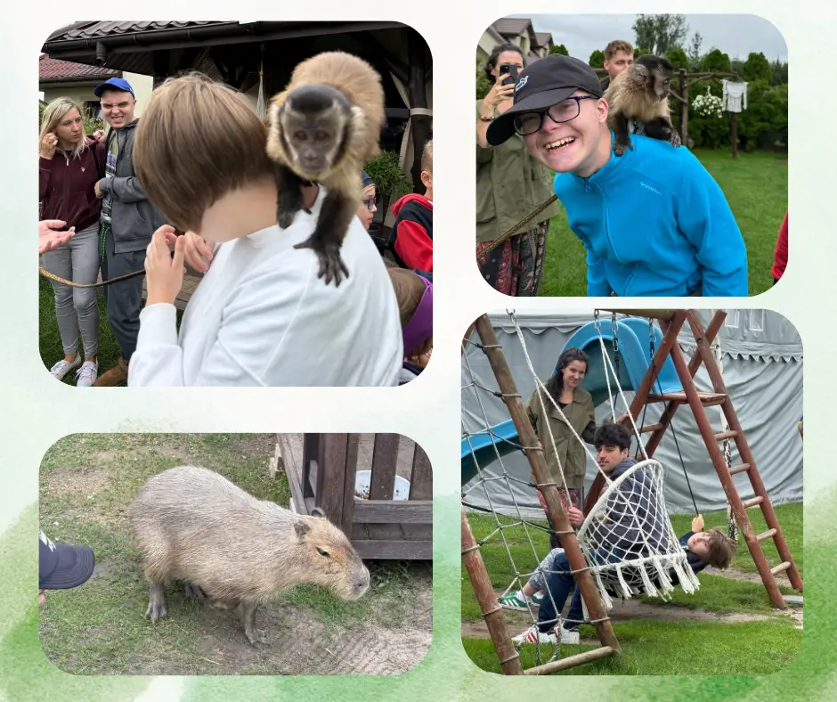Racuchowe Mini Zoo to fantastyczne miejsce, gdzie zwierzęta i ludzie je odwiedzający to jedność. Uczestnicy Pracowni Sztuk Różnych wybrali się tam, aby odkryć cudowny świat zwierząt. Poznaliśmy nie tylko zwierzęta gospodarstwa domowego, ale również mieszka tu spora grupka wyjątkowych zwierzaków, których nie spotkasz na co dzień. Ciekawe świata surykatki, milusie króliki, zabawne fretki, sympatyczny ostronos, towarzyskie szynszyle, urocze koszatniczki, skunks – indywidualista, owady, robaki, ślimaki afrykańskie, skorpion, żółw grecki, agama brodata i ulubienice wszystkich dzieci – świnki morskie. No i oczywiście najwięcej frajdy sprawiła małpka kapucynka. To prawdziwy azyl dla niechcianych zwierząt. Polecamy gorąco wizytę w tym cudownym miejscu.